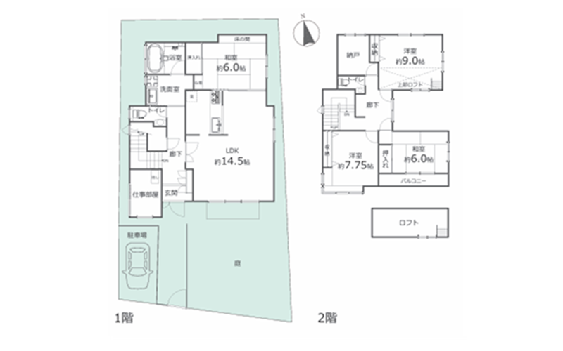 駐車場や庭が付いていて、お車を所持している方やお子様のいるご家庭にも安心の住宅です。